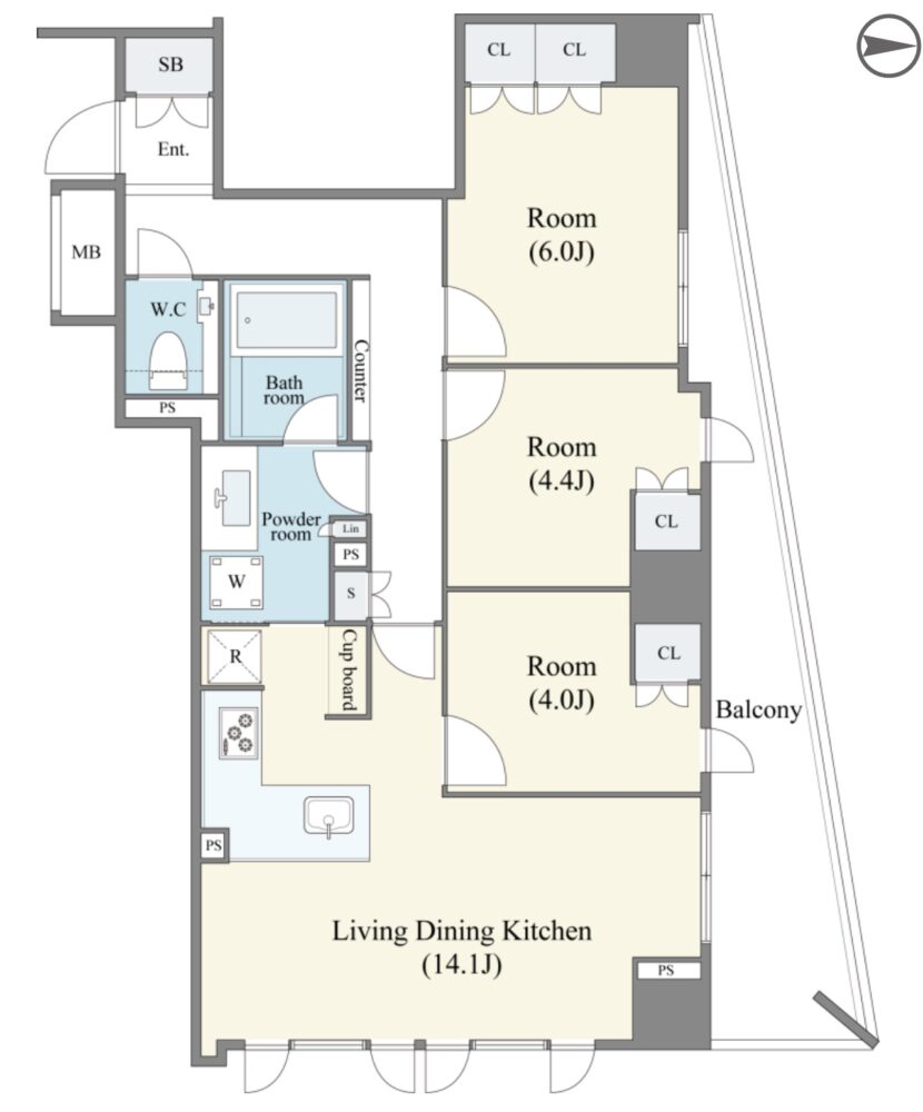 | 詳細間取 | 3F LDK14.1X1• 3F洋6X1• 3F洋4.4X1• 3F洋4X1 | ||
